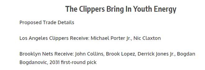 ✅快船得到:迈克尔・波特二世、尼克・克拉克斯顿